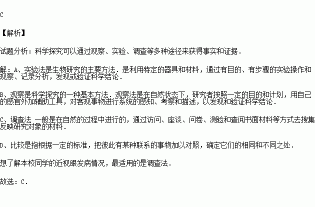 A.實驗法 B.觀察法 C.調(diào)查法 D.比較法