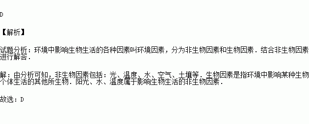 A、陽(yáng)光 B、水分 C、適宜的溫度 D、有機(jī)物