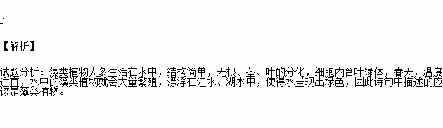 “日出江花紅勝火,春來江水綠如藍(lán)!苯壕G是由于下列哪類植物大量繁殖引起( )[
