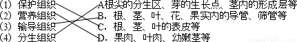 把構(gòu)成植物體的幾種重要組織與他們的主要分布用線連接起來。