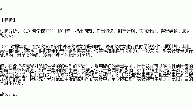 探究“光對鼠婦生活的影響”的實驗中,至少應(yīng)在每個實驗裝置中放幾只鼠婦?目的是什么?( )