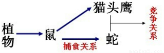 在某生態(tài)系統(tǒng)中,存在蛇、貓頭鷹和鼠等動物。當貓頭鷹也以鼠為食時,蛇與鼠、蛇與貓頭鷹的關系是: ( )
