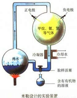 查看答案和解析>> 科目:初中生物 來源: 題型: (1)正負(fù)電極的作用是模擬 原始地球中的閃電 原始地球中的閃電 .(2)A中含有 甲烷 甲烷 、氨 氨 、氫 氫 、水蒸氣 水蒸氣 等氣體.(3)在B處可檢驗出有的生成 有機(jī)物或氨基酸、核酸 有機(jī)物或氨基酸、核酸 .(4)B、C處的液體相當(dāng)于 降雨(或原始降雨);原始海洋 降雨(或原始降雨);原始海洋 .(5)米勒實驗表明,生命起源中,從 無機(jī)物 無機(jī)物 生成形成有機(jī)小分子物質(zhì) 形成有機(jī)小分子物質(zhì) 是有可能的.查看答案和解析>> 科目:初中生物 來源: 題型: (1)提出問題 在原始地球條件下,無機(jī)小分子物質(zhì)能合成有機(jī)小分子物質(zhì)么? 在原始地球條件下,無機(jī)小分子物質(zhì)能合成有機(jī)小分子物質(zhì)么? .(2)實驗裝置A中的氣體有 甲烷 甲烷 、氨 氨 、氫 氫 、水蒸氣 水蒸氣 等氣體,裝置A是模擬原始大氣的成分和原始地球的條件 原始大氣的成分和原始地球的條件 ;裝置B是模擬產(chǎn)生水蒸氣的沸水 產(chǎn)生水蒸氣的沸水 ;裝置A中設(shè)置電極進(jìn)行火花放電是模擬原始天空的閃電 原始天空的閃電 .(3)米勒在實驗中收集到 產(chǎn)生了多種氨基酸等有機(jī)物 產(chǎn)生了多種氨基酸等有機(jī)物 .查看答案和解析>> 科目:初中生物 來源: 題型: 1953年,美國學(xué)者米勒模擬原始地球的條件和大氣成分,合成了多種氨基酸,根據(jù)該實驗結(jié)果可以推斷出( )