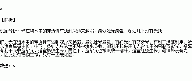 在海灣淺水處長(zhǎng)有綠藻,稍深處長(zhǎng)有褐藻,再深處長(zhǎng)有紅藻,海洋植物的這種分布主要受哪些因素影響( )