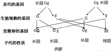 (4)甲組中,產(chǎn)生殘翅后代的機會為 ;丙組中,產(chǎn)生殘翅后代的機會為
