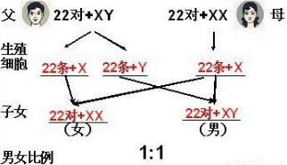 ①男性產(chǎn)生兩種類型的精子且比例相等