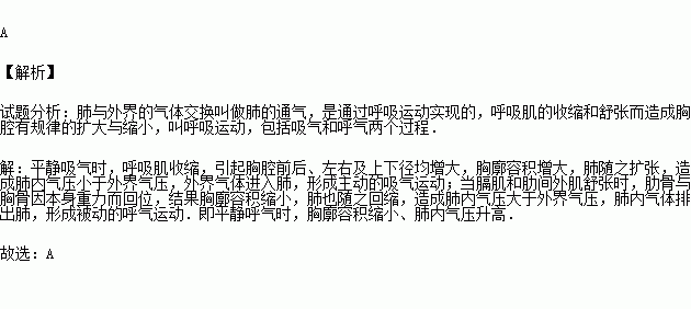 人在平靜狀態(tài)下完成呼氣過(guò)程,胸廓容積和肺內(nèi)氣壓的變化是( )