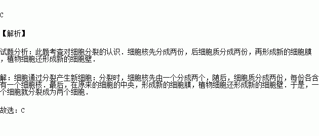 ①細(xì)胞質(zhì)分成兩份,每份各含一個(gè)細(xì)胞核