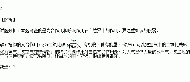 當(dāng)踏入山林時(shí),會(huì)感到空氣特別地清新和濕潤(rùn).這主要是由于( )