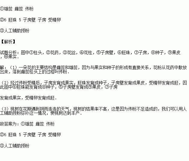 ③若桃樹在花期遇到陰雨連連的天氣,桃樹的結(jié)果率不高,我們可以用 彌補(bǔ)這一情況,使桃樹達(dá)到豐產(chǎn).