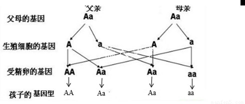 (2005?蘇州)已知有酒窩和無酒窩是一對(duì)相對(duì)性狀,現(xiàn)在有一對(duì)夫婦,丈夫的基因組成是Aa,妻子的基因組成是aa,那么他們的子女基因組成可能是( 。