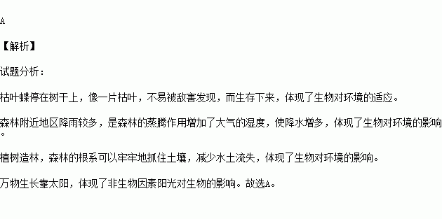 A.枯葉蝶停在樹干上,像一片枯葉