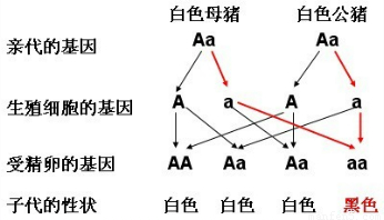 (3)如果顯性性狀由基因A控制,隱性性狀由基因a控制,那么2頭黑色小豬的基因組成為 。