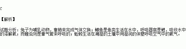 兔子、鯽魚、蝗蟲(chóng)和蚯蚓是生活在不同環(huán)境中的生物,它們進(jìn)行呼吸的主要器官依次是