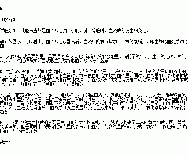 在某一時刻檢測某一器官的動脈和靜脈中的血液成分,結(jié)果其氧氣、二氧化碳的相對含量如圖所示,該器官是( )