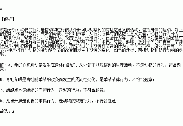 A.兔的心臟在跳動(dòng) B.青蛙冬眠