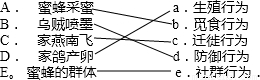 A.蜜蜂采蜜 a. 繁殖行為