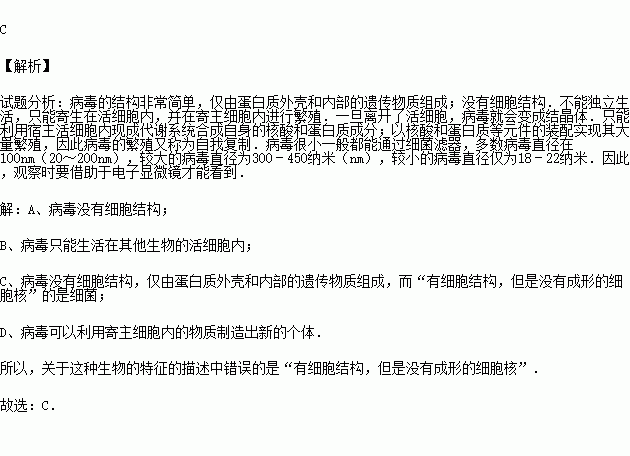 D.可以利用寄主細(xì)胞內(nèi)的物質(zhì)制造出新的個(gè)體