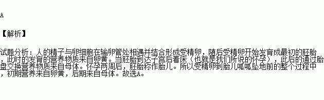 “十月懷胎,一朝分娩”,在從受精卵到胎兒呱呱墜地前的整個過程中,人的生長發(fā)育所需各種營養(yǎng)物質(zhì)從下列哪項(xiàng)中獲取?( )