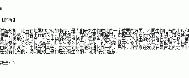 A.古老地層中的生物化石簡(jiǎn)單、低等