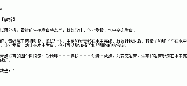 “小青蛙,叫呱呱,游泳跳高本領(lǐng)大,不吃米,不吃瓜,專吃害蟲保莊稼”青蛙是當(dāng)之無愧的“農(nóng)田衛(wèi)士”.青蛙的生殖發(fā)育特點是( )