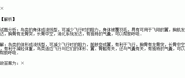 (2015秋•西區(qū)校級月考)下列關(guān)于鳥適于飛行的特點(diǎn),描述正確的是( )