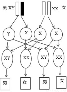【答案】分析:此題考查的知識點是人的性別的遺傳.解答時可以從人的性別遺傳圖解方面來切入.