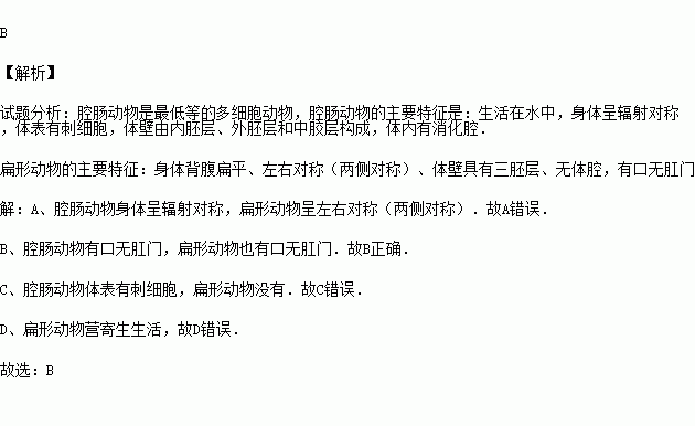 A.兩側(cè)對(duì)稱 B.有口無(wú)肛門
