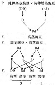 一株高莖(DD)豌豆和一株矮莖(dd)豌豆雜交,后代都表現(xiàn)為高莖。若后代進行自花傳粉,則受精卵的基因組成可能有( )。