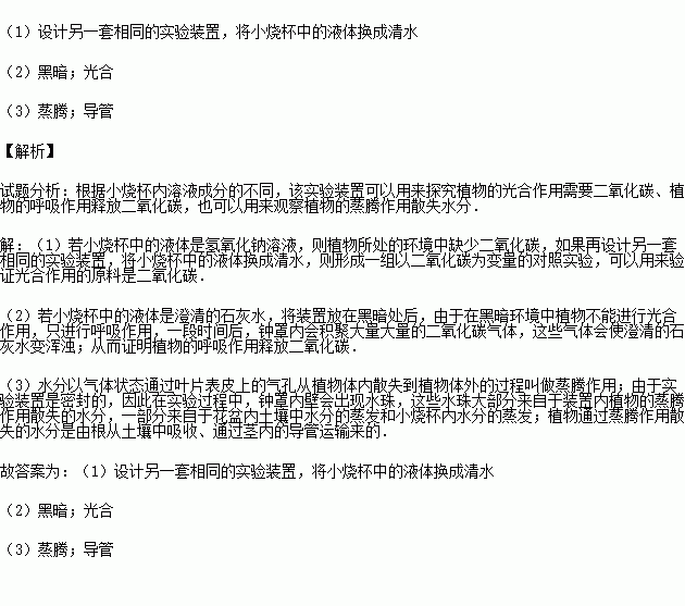 (1)若小燒杯中的液體是氫氧化鈉溶液(可吸收二氧化碳),要探究二氧化碳是光合作用的原料,應(yīng)該怎樣沒置對(duì)照實(shí)驗(yàn)? .