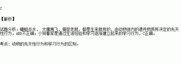 下列動(dòng)物行為屬于后天學(xué)習(xí)行為的是