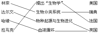 | 請將科學(xué)家與相應(yīng)的研究成果、國籍用線連起來 | ||||||||||||