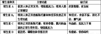 【答案】分析:雖然人體對維生素的需要量很小,但維生素對人體的作用卻很大.人體一旦缺乏維生素,就會影響身體的正常的生長和發(fā)育,并且會引起疾。