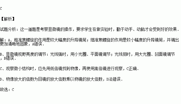 A.轉(zhuǎn)動(dòng)粗準(zhǔn)焦螺旋使鏡筒上升,轉(zhuǎn)動(dòng)細(xì)準(zhǔn)焦螺旋使鏡筒下降