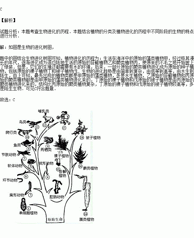 A.最先出現(xiàn)植物類群是甲 B.乙和丙都是由甲進(jìn)化來的