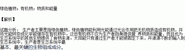 、 是生態(tài)系統(tǒng)中的生產(chǎn)者,它能將無機物合成為 ,同時將太陽的光能儲存在有機物中,為生態(tài)系統(tǒng)中其他生物提供 ;