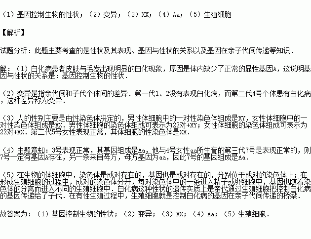 (5)控制白化病的基因在親子代間傳遞的“橋梁”是 .