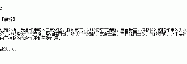 (2013•新疆)新疆伊犁河谷植被茂密,空氣清新,含氧量高;空氣濕度大,降雨量多.主要原因是由于植物的( )