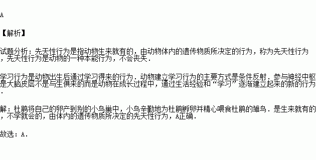 如圖,杜鵑占據(jù)了小鳥的鳥巢,并在其中生下它的蛋.小鳥不僅替杜鵑孵蛋,還哺育長得比自己還大的小杜鵑.該現(xiàn)象是( )