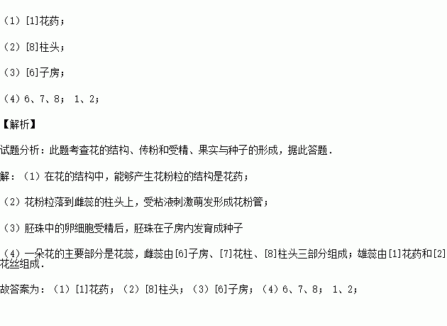 如圖是花的結(jié)構(gòu)示意圖,請據(jù)圖回答下列問題: