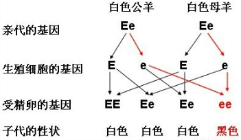 | C.黑色是隱性性狀 | D.黑羊的基因組成是ee |
