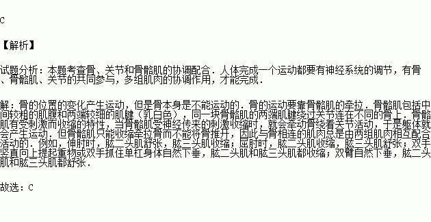 當(dāng)你伸肘時,肱二頭肌、肱三頭肌如何運動( )