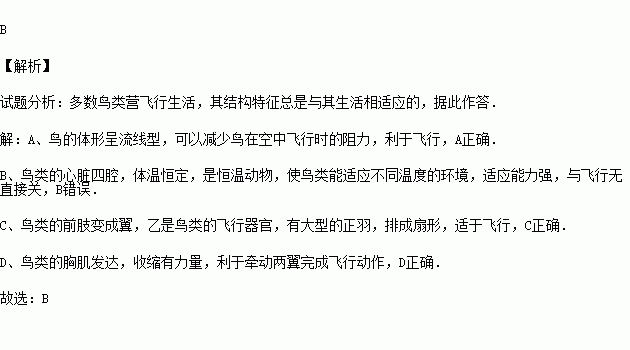 下列與鳥(niǎo)類飛行無(wú)關(guān)的是( )