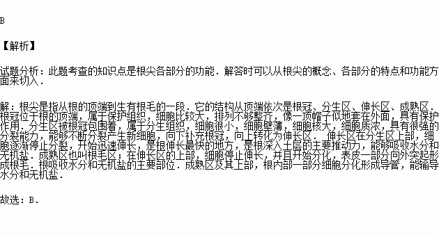 A.根冠 B.分生區(qū) C.伸長(zhǎng)區(qū) D.成熟區(qū)