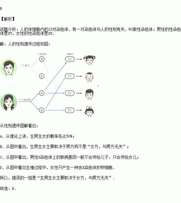D.生殖過程中,女性只產(chǎn)生一種含X染色體的卵細(xì)胞