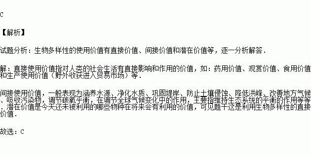 A.潛在價值 B.間接價值 C.直接價值 D.觀賞價值