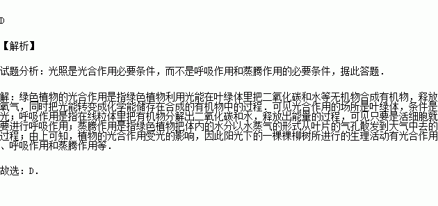 陽光下,一株綠色植物所能進(jìn)行的生理活動有( )