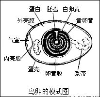 下圖是鳥卵的結構示意圖,鳥的受精卵中能夠發(fā)育成胚胎的部分是( )