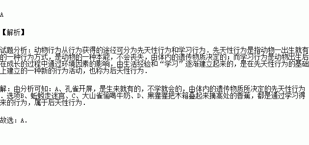 D.動(dòng)物越高等,學(xué)習(xí)行為越復(fù)雜