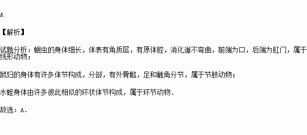 蛔蟲、鼠婦、水蛭分別屬于( )